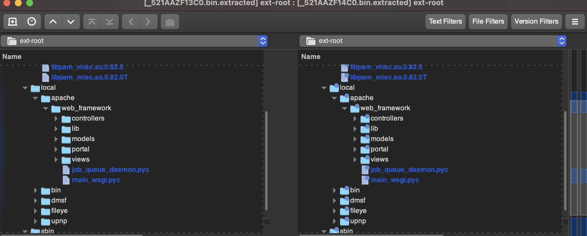 We use meld merge to diff the ext-root's, and noticed there sure is a bunch of changes in the Python webservices.
