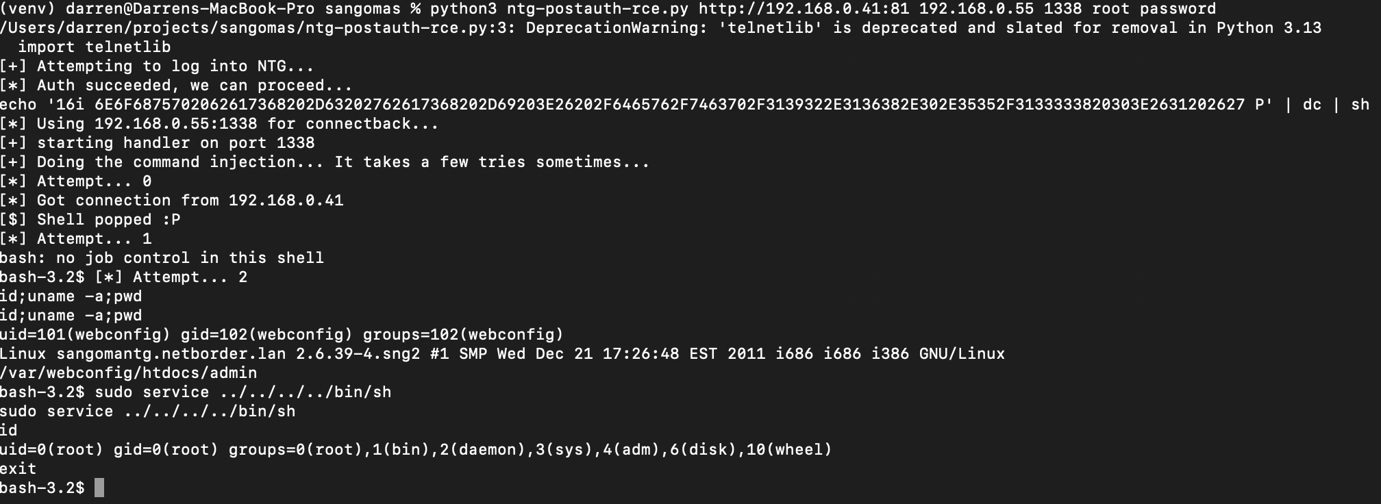 Sangoma NTG Post-Authentication Remote Code Execution.